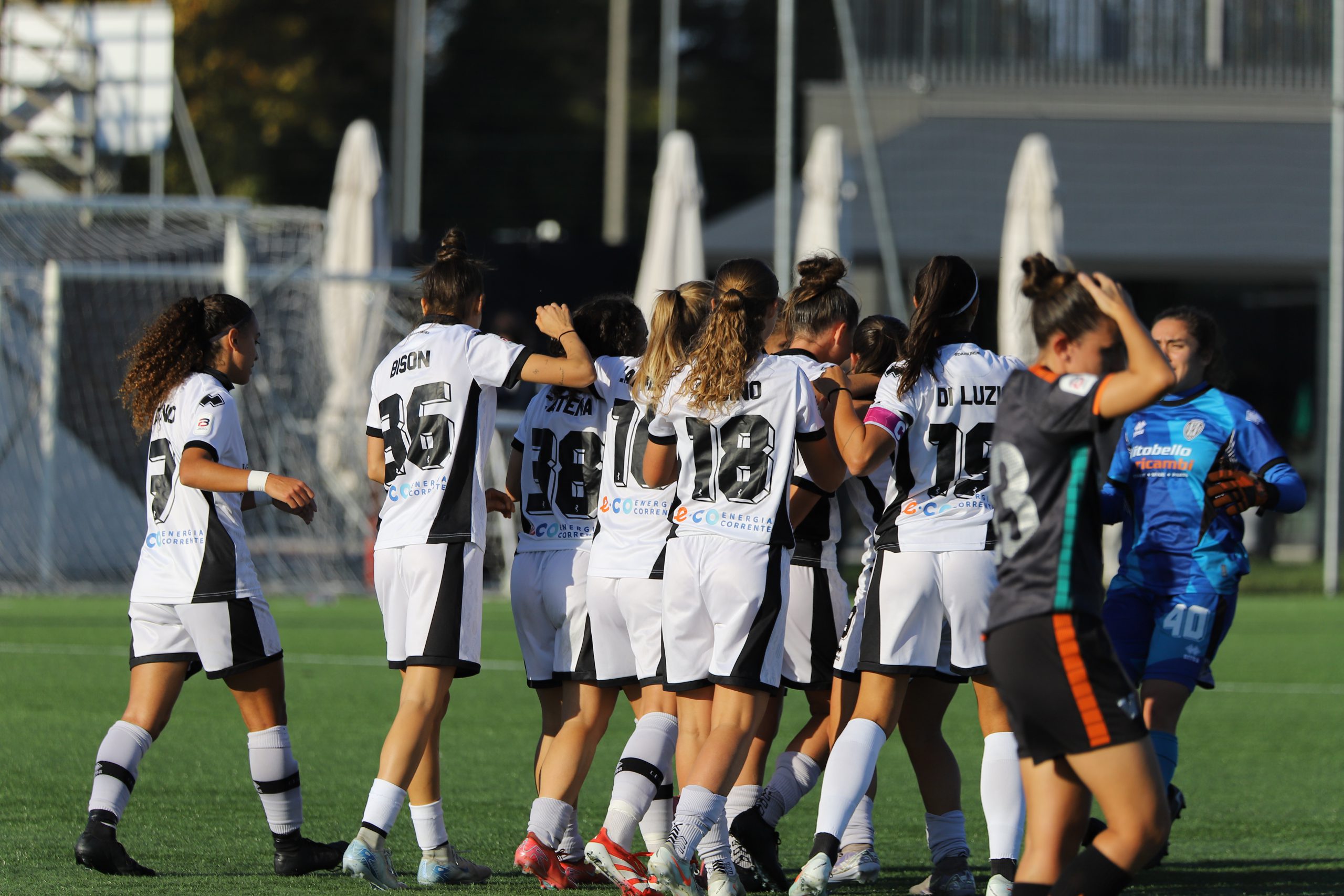 Dare continuità e fiducia alla squadra per poter ambire a qualcosa di importante, trionfando in casa e anche in trasferta contro le avversarie più dure e compatte. Era probabilmente questo il mantra incanalato da mister Rossi nell’animo delle sue ragazze, desiderose di riconfermarsi dopo un 4-2 decisamente incoraggiante, impartito ad un Arezzo spento e fumoso. Nella giornata corrente, le donne del cavalluccio troveranno il Trastevere Calcio Women, compagine molto in difficoltà e con all’attivo una differenza reti spettrale, figlia delle zero reti messe a segno finora, con un passivo pari a -6. Ma si sa, soprattutto in questo campionato, mai sottovalutare nessuno e, infatti, la partita si dimostrerà parecchio più complicata del previsto. Partono forte le romane che sfiorano subito il vantaggio: appena scoccato il 4’ di gioco, Serao apre magistralmente per Lombardo, la quale in campo aperto può cavalcare e concludere nei pressi dell’area di rigore. Difesa bianconera seminata, sfera che fa la barba al palo e primo segnale importante recapitato all’interessata Serafino. Il Cesena riesce a svegliarsi solo all’alba del 23’ e 26’ tramite un paio di conclusioni monitorate facilmente dalla numero 1 Zaghini: in primis, un tiro-cross tagliato da Milan che termina sul fondo e, in secondo luogo, un tentativo velleitario di Di Luzio, abile nel recuperare nella mischia un pallone sanguinoso in seguito ad una punizione ribattuta. La prima frazione, invece, si chiude con altri due spaventi consistenti per la retroguardia ospite, salvata solamente dalla onnipresente Serafino: quest’ultima si accartoccia sul suo palo per difendere un fendente ravvicinato di Lombardo e, inoltre, deve correre ai ripari al 33’ sulla grave indecisione di Milan in impostazione, rea di aver eseguito un retropassaggio troppo corto per l’estrema difendente, costretta a spazzare un’ipotetica mina vagante. Nei seguenti tredici giri di lancette regna la noia più assoluta, frutto di un match abbastanza impreciso tecnicamente e dai ritmi non esaltanti. Al rientro dall’intervallo, le due formazioni sembrano essere rivitalizzate e pronte a dare una scossa al canovaccio della gara. Al 48’, infatti, ecco una ghiottissima possibilità per sbloccarla nei piedi di Pizzuti: l’attaccante di casa si ritrova tra le proprie grinfie la sfera grazie ad un rimpallo fortunoso ma, a praticamente poche manciate di centimetri dall’uno a zero e con la sola Serafino di fronte a sé, riesce incredibilmente a calciare a lato di diversi metri. Rete letteralmente divorata dall’appena diciannovenne. In risposta alle offensive del Trastevere ci pensano Fadda e Di Luzio: al 53’ la prima, su calcio da fermo, inventa in area per la numero 19 che di un nonnulla non arrivare a ribadire in gol; un minuto dopo, sempre la Di Luzio, raccoglie una rimessa nei pressi di Zaghini, si divincola dalla marcatura e tira a giro sul secondo palo con la sfera alta di poco. Primi e concreti scossoni delle romagnole che alzano la pressione e guadagnano campo utile per imbastire rapide azioni. Dopodiché, a prendersi la scena è la panchina delle padrone di casa, letteralmente esplosa a causa di un possibile rigore non concesso dal direttore Gallorini al 66’, portando alla conseguente espulsione e all’ammonizione di un paio di elementi dello staff di Ciferri, anch’egli scosso dalla decisione arbitrale. Trascorsi sette minuti, sale in cattedra l’energica Zamboni: l’ex giocatrice della Juventus fa partire un bolide dai 25 metri che sbatte sul montante dopo il riflesso miracoloso di Zaghini, facendo sussultare mister Rossi e tutte le sue compagne con una conclusione meravigliosa ma prontamente respinta. Il Cesena continua a far salire i giri del motore e all’85 ha ancora il match ball a sua disposizione: sponda chirurgica di De Muri per l’inserimento accentrato di Ciano, la quale impatta perfettamente e dai 20 metri spedisce fuori di pochissimo con Zaghini completamente battuta. Nonostante le due occasioni colossali le cesenate non demordono, centrando l’obiettivo al 91’: Calegari imbecca sull’out destro Ciabini, la quale crossa forte e rasoterra in area di rigore, trovando la diez Fadda che insacca sotto al sette avversario. Azione e rete strabiliante delle ragazze del cavaluccio! Attenzione però, non è finita qui, poiché al 95’ Serafino compie un miracolo, respingendo il colpo di testa che avrebbe riportato in equilibrio il match! Paratona della numero 40 che congela il risultato e il clean sheet, permettendo alle sue di cavalcare l’onda dell’entusiasmo e dei 3 punti, ottenuti in seguito ad una partita rivelatasi più intricata del previsto. Avanti così!